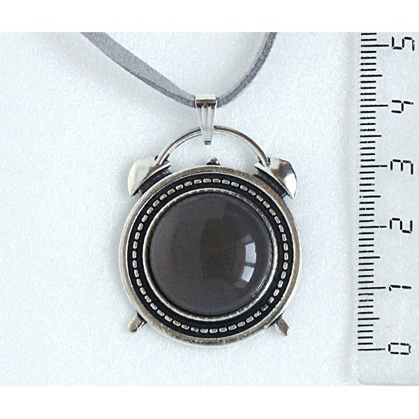 Кулон из агата серого, круг 20мм, оправа "будильник"