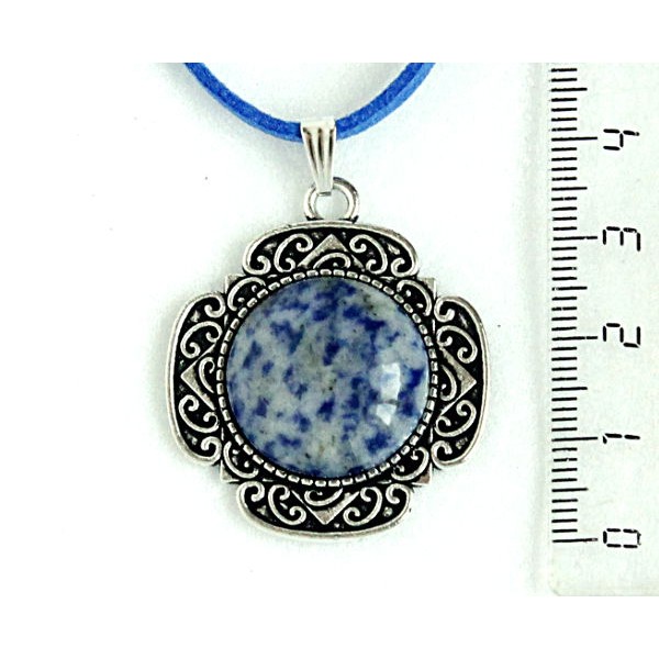 Кулон из лазурита (бело-синий), круг 20мм, оправа "4 лепестка"