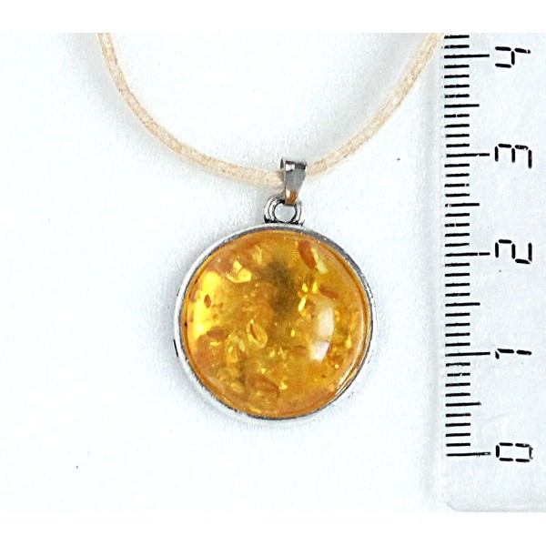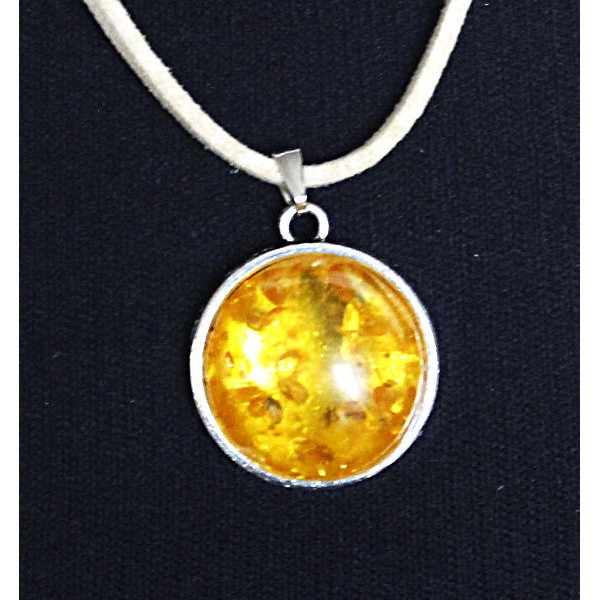 Кулон из янтаря светлого, кабошон-мозаика, круг 12..