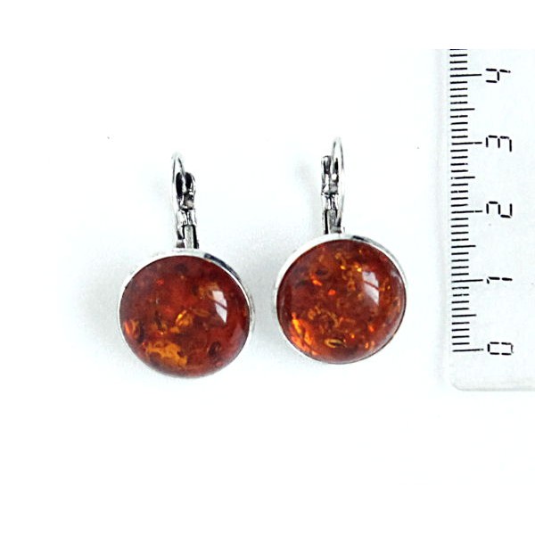 Cерьги из янтаря темного, кабошон-мозаика, круг 12мм, замок петелька