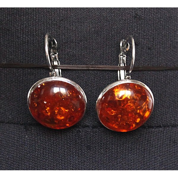 Серьги из янтаря темного (кабошон-мозаика), круг 18мм, швензы посеребрение