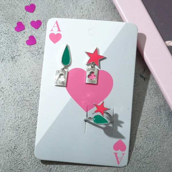 Набор: серьги, кольцо "Аниме" звезда и капля, цвет зелёно-розовый, цвет серебристый