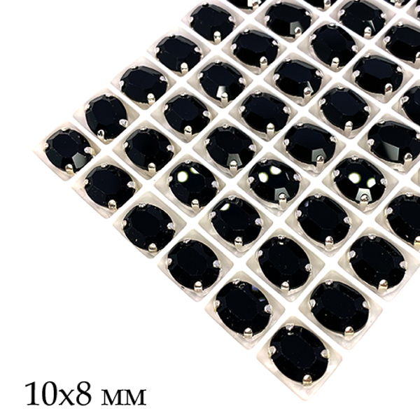 Стразы Овал Премиум 10*8 мм черный/серебристый (Jet/silver) 1 штука