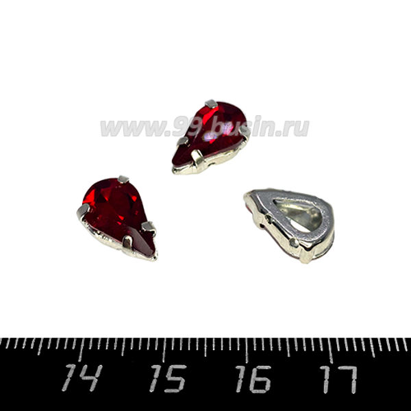 Стразы Капля 13*8 мм насыщенный красный/оправа серебро, 1 штука