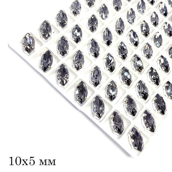 Стразы Наветт Премиум 10*5 мм серый/серебристый (Black Diamond/silver) 1 штука