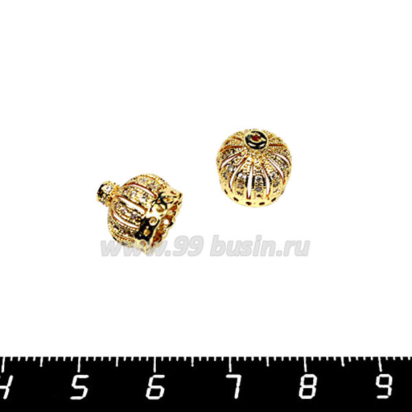 Колпачок Премиум Корона с микроцирконами 10*11 мм цвет золото 1 штука