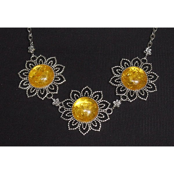 Колье из янтаря (переплавленый) "3 цветка" на цепо..