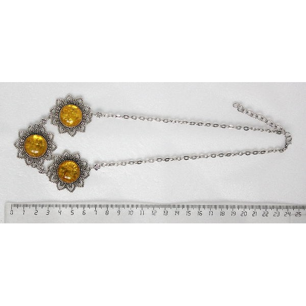Колье из янтаря (переплавленый) "3 цветка" на цепочке, 48-50см, цвет желтый, круг 18мм