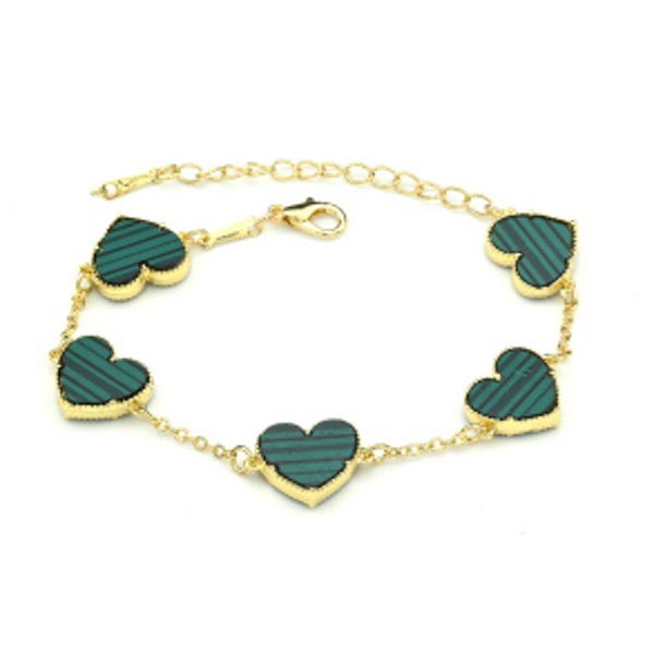 Браслет-цепочка "Сердечки" цвет малахит, 17см (иск.)