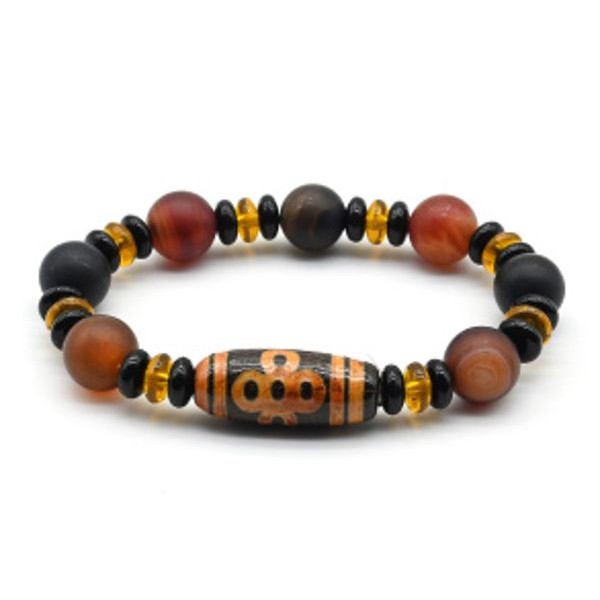 Браслет с бусиной дзи "Пять глаз с молнией" бочонок 14*30мм с сардониксом шарик 12мм