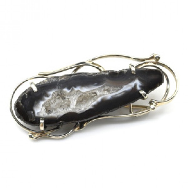 Брошь с жеодами агата бразильского 52*23мм.