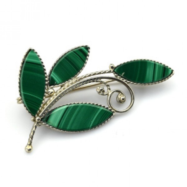 br33-00158, br33, br33-, 33-, 33-00158, веточка, малахит, брошь_малахит, веточка_с_листьями