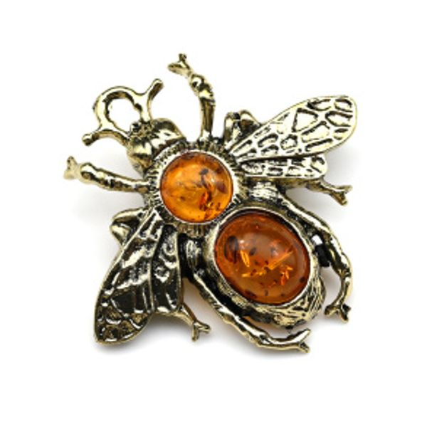 Брошь с янтарем в металле "Оса" 43*40мм коньячный (иск.)