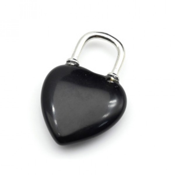 Кулон на шею женская Замок - Сердце 20*31мм с агатом черным.