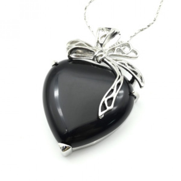 Сердце с бантиком 31*47мм кулон с агатом черным