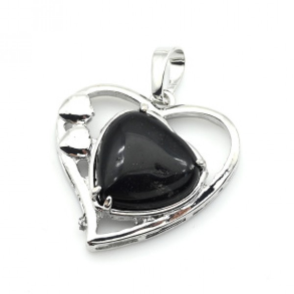 Кулон Сердце 27*27мм с агатом черным