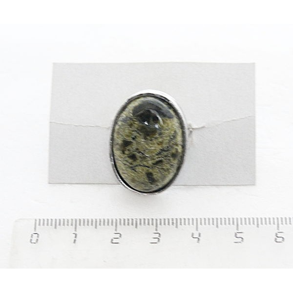 Кольцо из змеевика, литое широкое, цвет родиум, се..