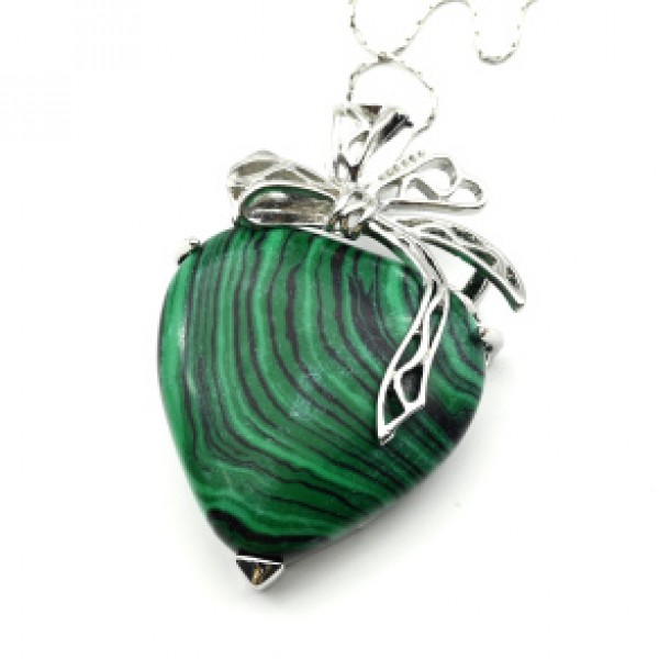 Сердце с бантиком 31*47мм кулон с малахитом искусственным (иск.)
