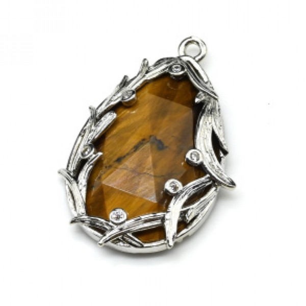 • Кулон с камнем тигровый глаз капля 25*35мм, серебристый