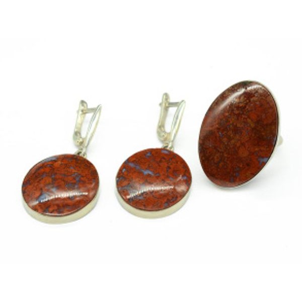 • Кольцо и серьги с агатом красная лагуна