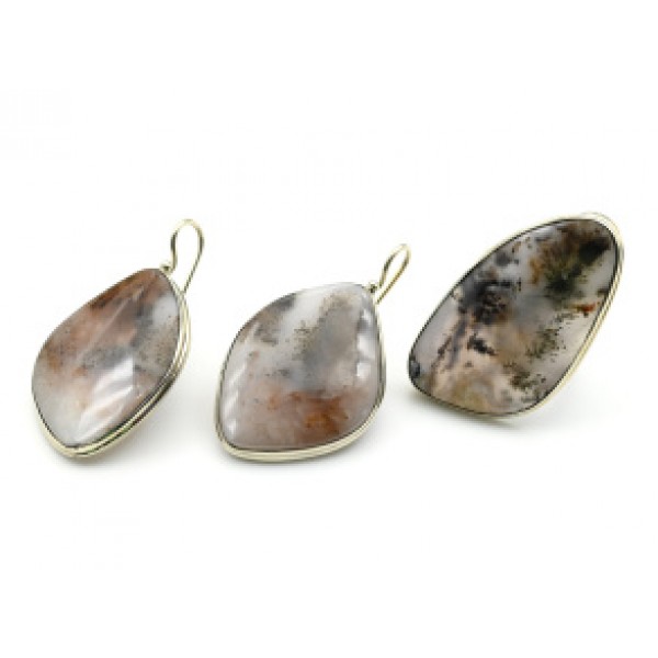 Кулон с агатом моховым в посеребрении грация 26*47..