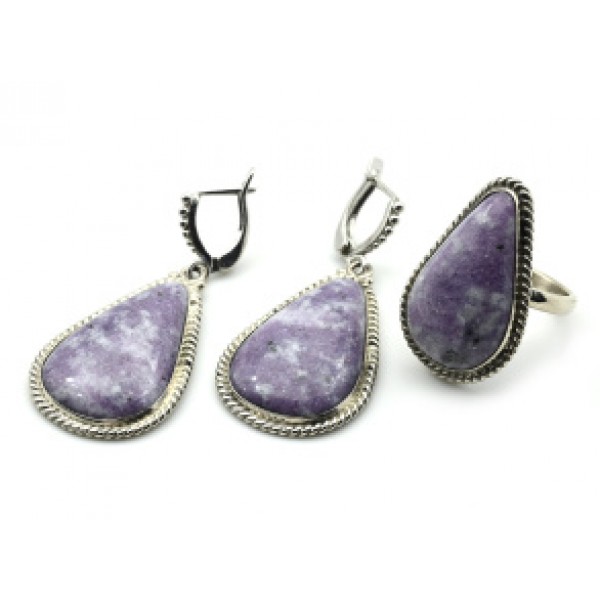 Кольцо и серьги лепидолит " Капля "