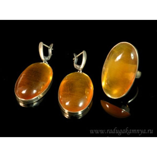 Кольцо и серьги цитрин овал, (иск.)