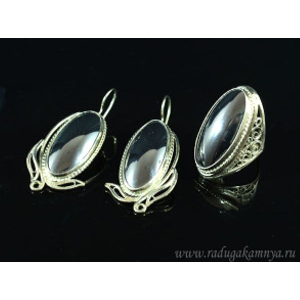 Кольцо и серьги гематит