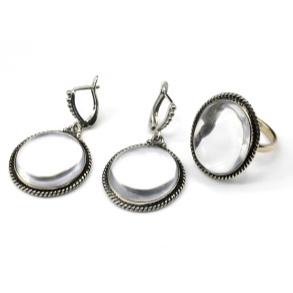 Кольцо и серьги из горного хрусталя, овал 25х14мм ..