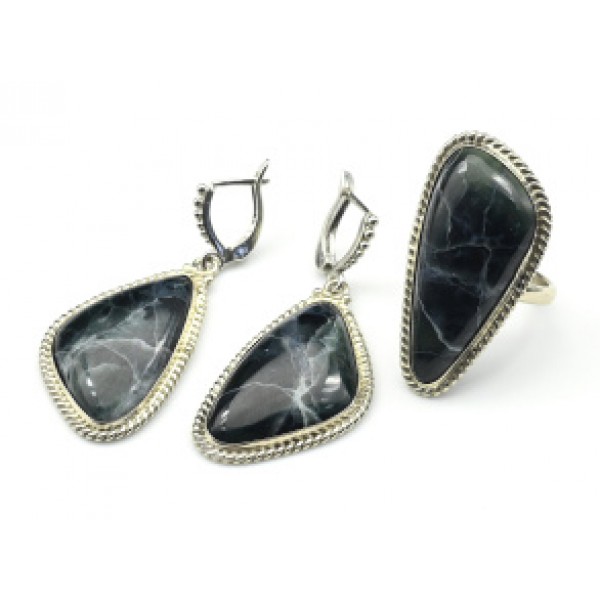 Кольцо из змеевика, литое широкое, цвет родиум, се..