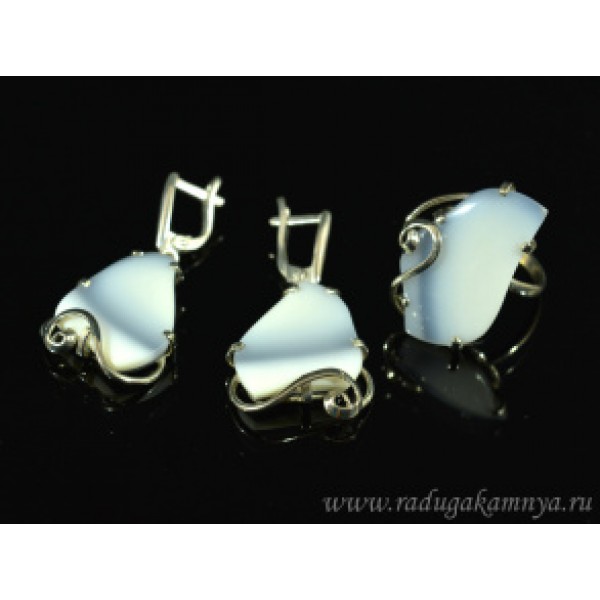Кольцо и серьги кахолонг (Казахстан)