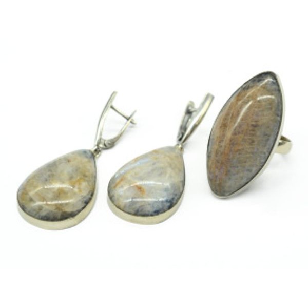 Кольцо и серьги беломорит