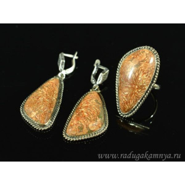 Кольцо и серьги риолит " Грация "