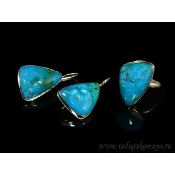 Кольцо и серьги из хризоколлы..
