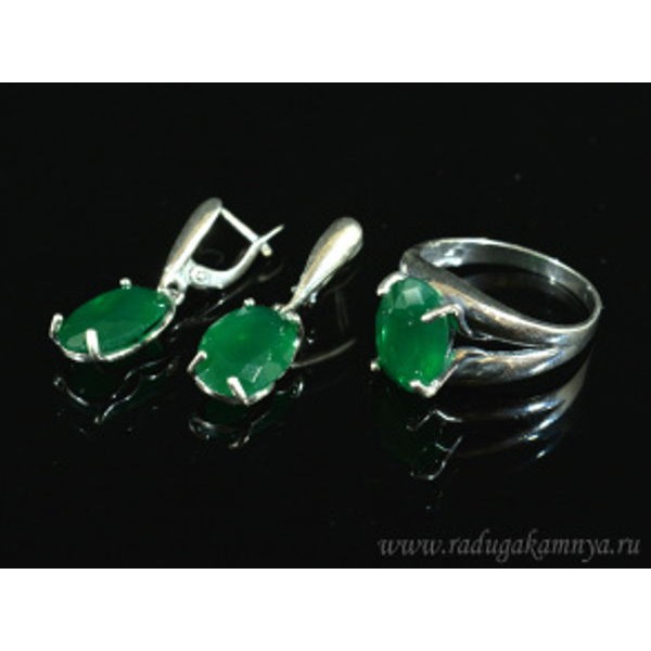 Кольцо и серьги с хризопразом (имитация) (иск.)