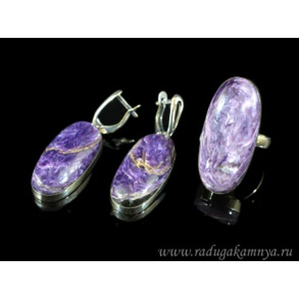 Кольцо и серьги чароит овал 32х18мм швензы посереб..