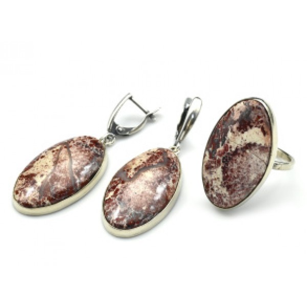 Кольцо и серьги яшма уральская " Овал "