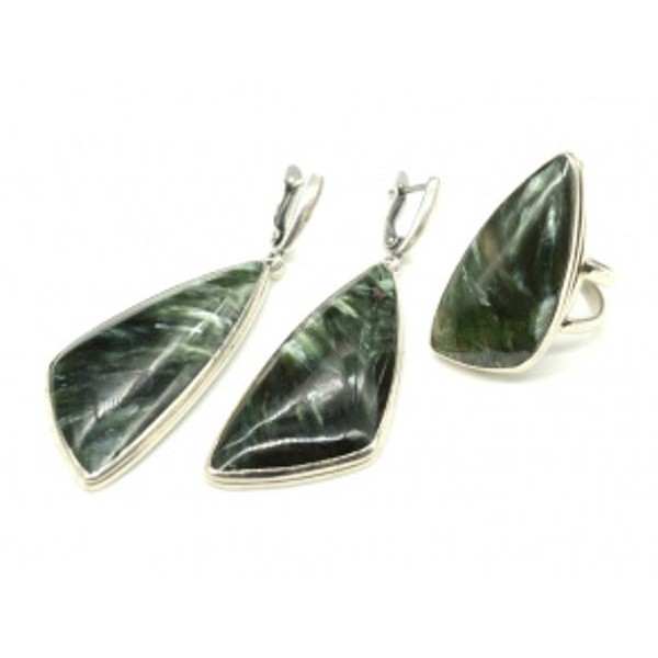 Кольцо и серьги серафинит " Грация "