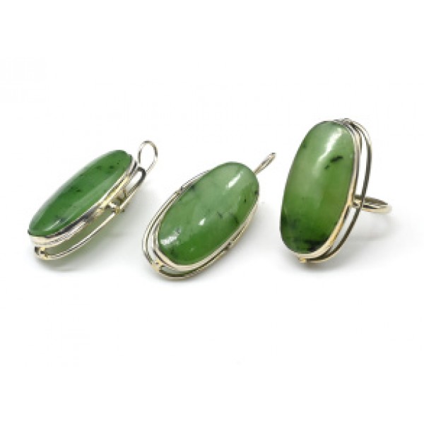 Кольцо и серьги из нефрита, листик 23х14мм р-р 17-19мм