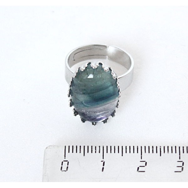Кольцо с флюоритом, овал 18x13, литая оправа, безразмерное