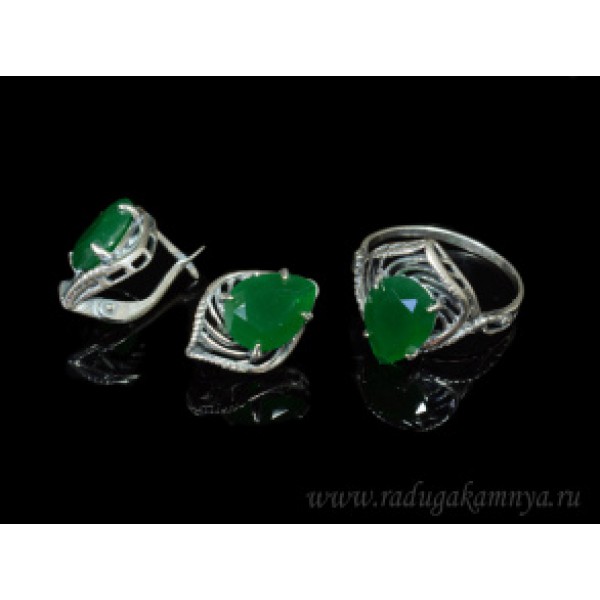 Кольцо и серьги с хризопразом (имитация) (иск.)