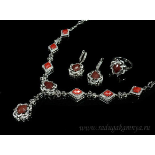 Набор с фианитами цвет красный в родиевом покрытии, 48см (иск.)