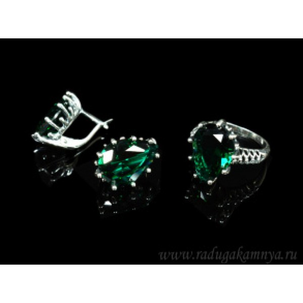 Кольцо и серьги с цирконом искусственным, цвет зеленый (иск.)