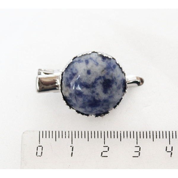 Заколка-крокодил с лазуритом (бело-синий), круг 20мм