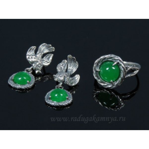 Кольцо и серьги с кварцем (имитация хризопраза)