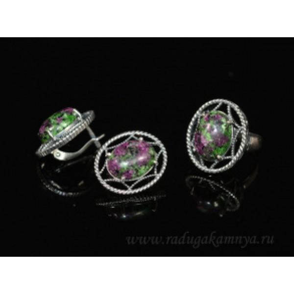Кольцо и серьги с цоизитом