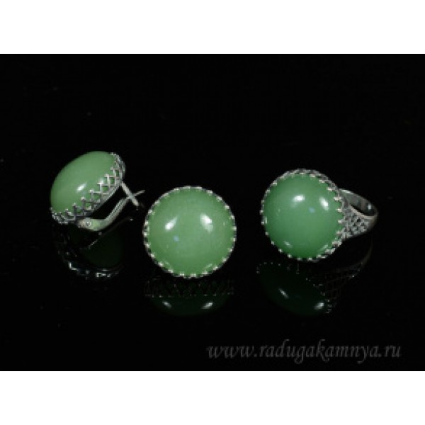 Кольцо и серьги с кварцем (имитация нефрита)
