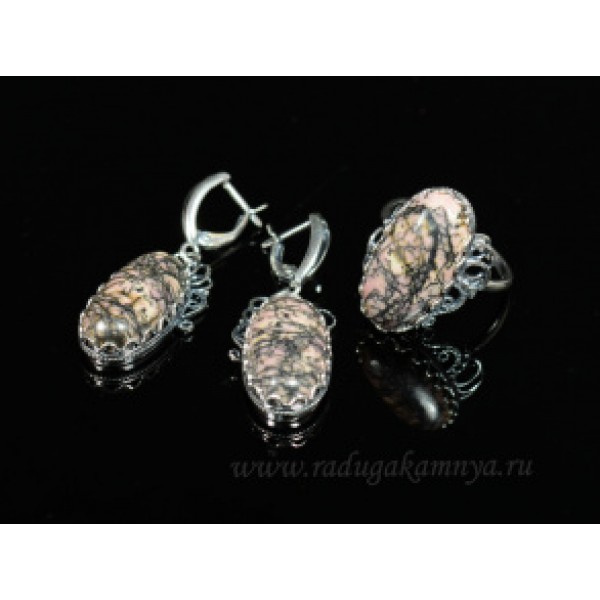 Кольцо и серьги с родонитом