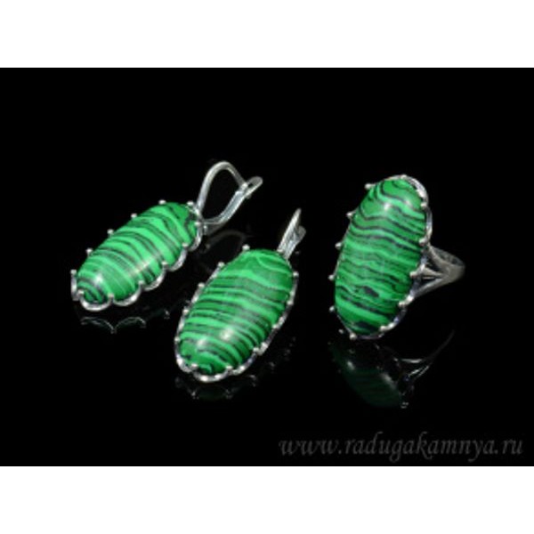 Кольцо и серьги с малахитом (имитация) (иск.)