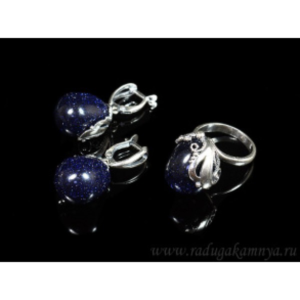 Кольцо и серьги с авантюрином синим (имитация) (иск.)